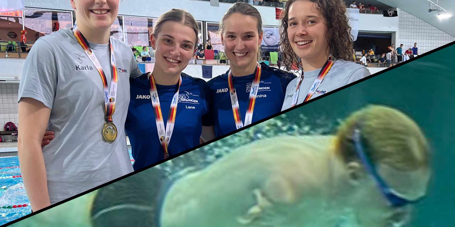 Wenn wir uns anstrengen, muss Josia die Urkunde nicht alleine entgegennehmen und bekommt Gesellschaft aus den eigenen Reihen. Denn dieses Jahr ist eine weitere Nominierung von Sportlerinnen der SSG81 Erlangen im Rennen. Unsere Mädels der 4×50 Lagenstaffel aus der 1. Wettkampfmannschaft sind heiß auf den Titel „Mannschaft des Jahres 2024“. Die Schwimmerinnen Karla Völcker, Lene John, Janina Grasbon und Anna Pfretzschner konnten im letzten Jahr ebenfalls Erfolge verzeichnen und kämpften sich bei den Deutschen Master-Meisterschaften an die Spitze. Sie gewannen in ihrer Altersklasse den Wettkampf über 50m Lagen und erreichten außerdem in der Freistil-Staffel den dritten Platz.